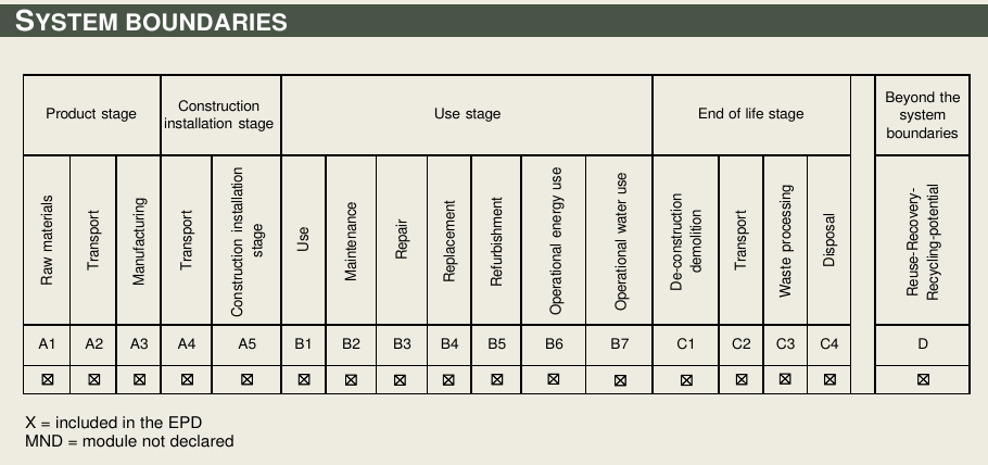 The data in an EPD is derived from an LCA, which analyses the environmental effects of a product from “cradle to grave”.